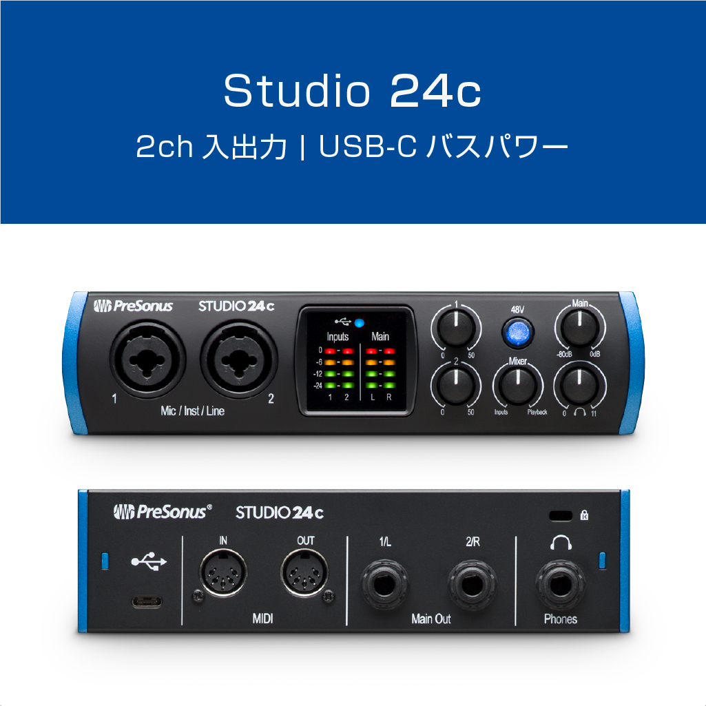 PreSonusがセール開始、24Bit 192kHzデジタル・コンバーターを搭載した高品位な音楽制作環境をモバイルでもホーム・スタジオでも実現するオーディオインターフェース「Studio 24c」等、各種人気I/Oが最大32%OFFに!!!