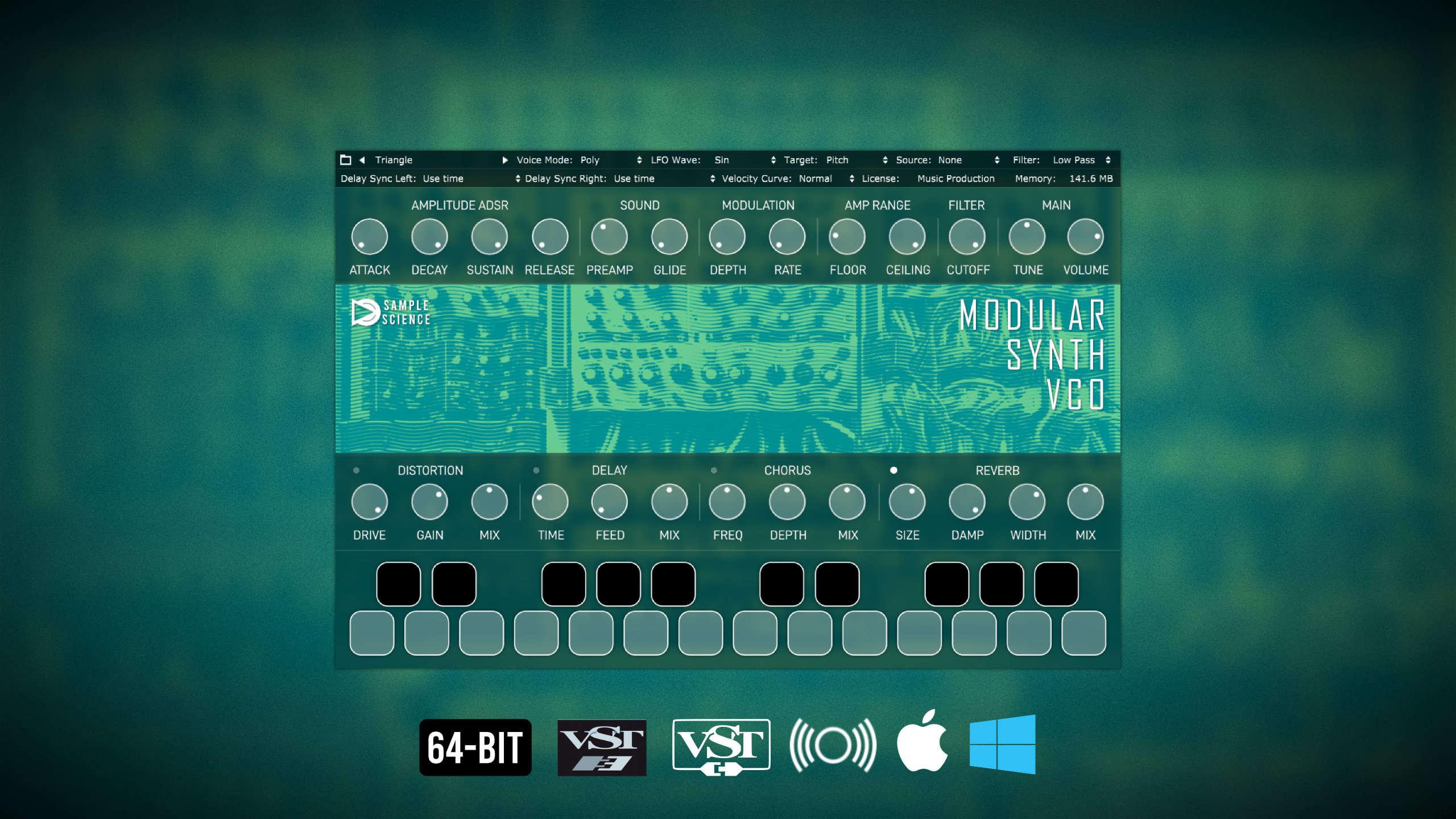 見かけのシンプルさにも関わらず、モジュラー シンセ VCO は、深いベースの作成、優美なパッドの作成、厚いリードの鍛造、ソフト キーの生成など、さまざまな可能性を提供します。特にローファイトーの生ン成に優れていますが、その機能はこの領域を超えています。このプラグインには、25 個の事前にプログラムされたサウンドの FXP プリセット コレクションが付属しています (Logic Pro およびプラグインの AU バージョンとは互換性がありません)。