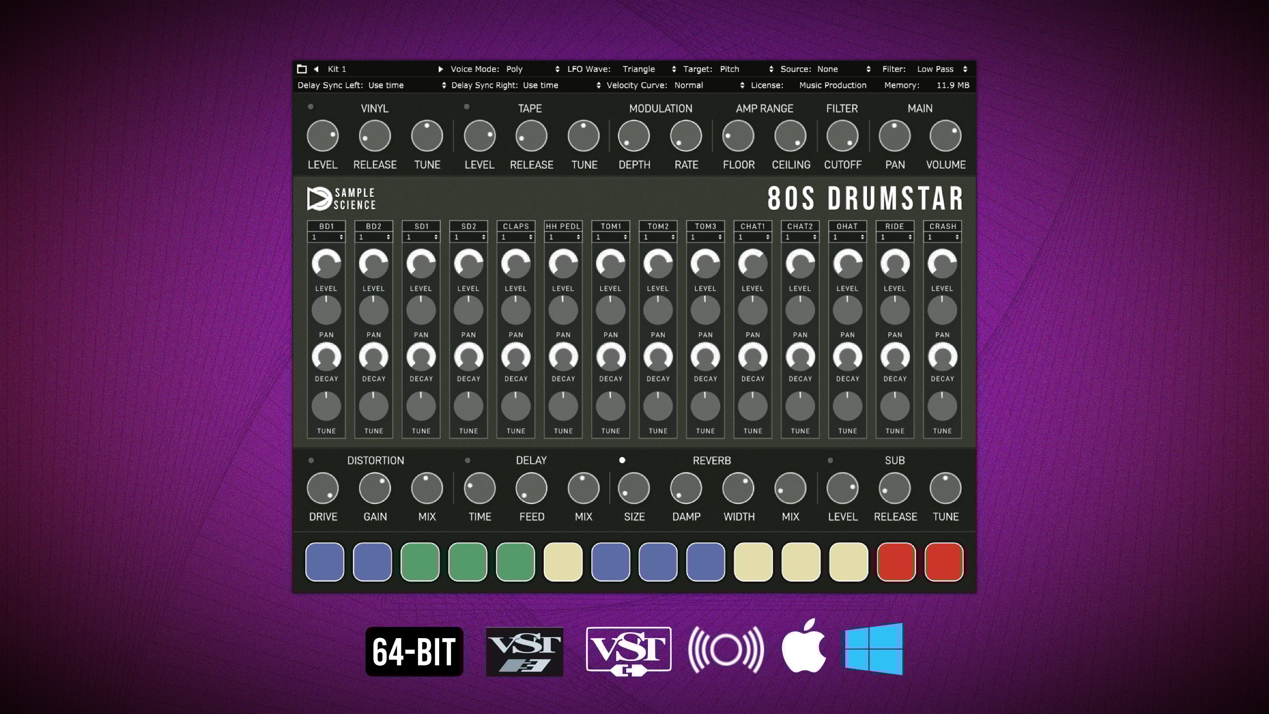 【無料配布】Lo-Fiでパンチの効いた素晴らしいサウンドを持つイタリアの 80 年代中期ドラムマシン Elka DrumStar 80に基づくドラムマシン音源 SampleScience「80s DrumStar」リリース & 無料配布中!!