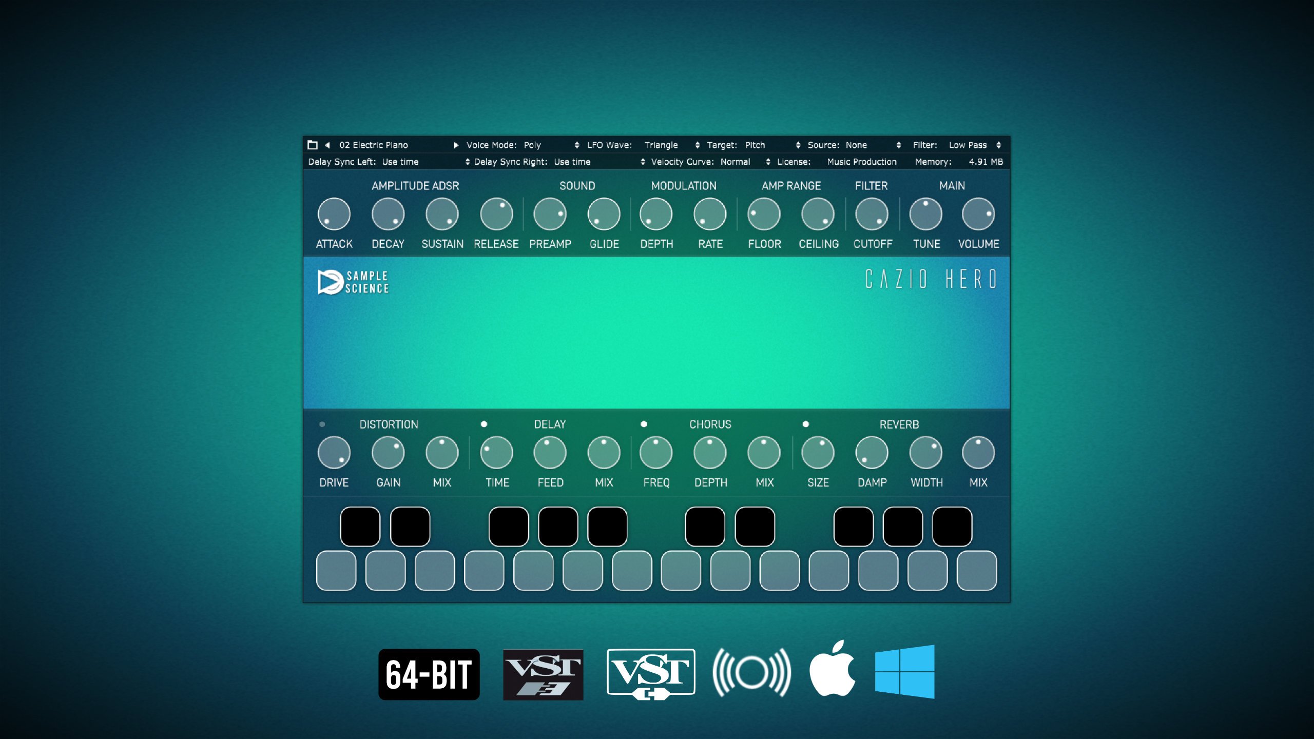 Cazio Hero は原始的でまろやかなサウンドを生成し、80 年代のポップ ミュージック、レトロなビデオ ゲームのサウンドトラック、80 年代の企業ビデオ制作などのジャンルに最適です。