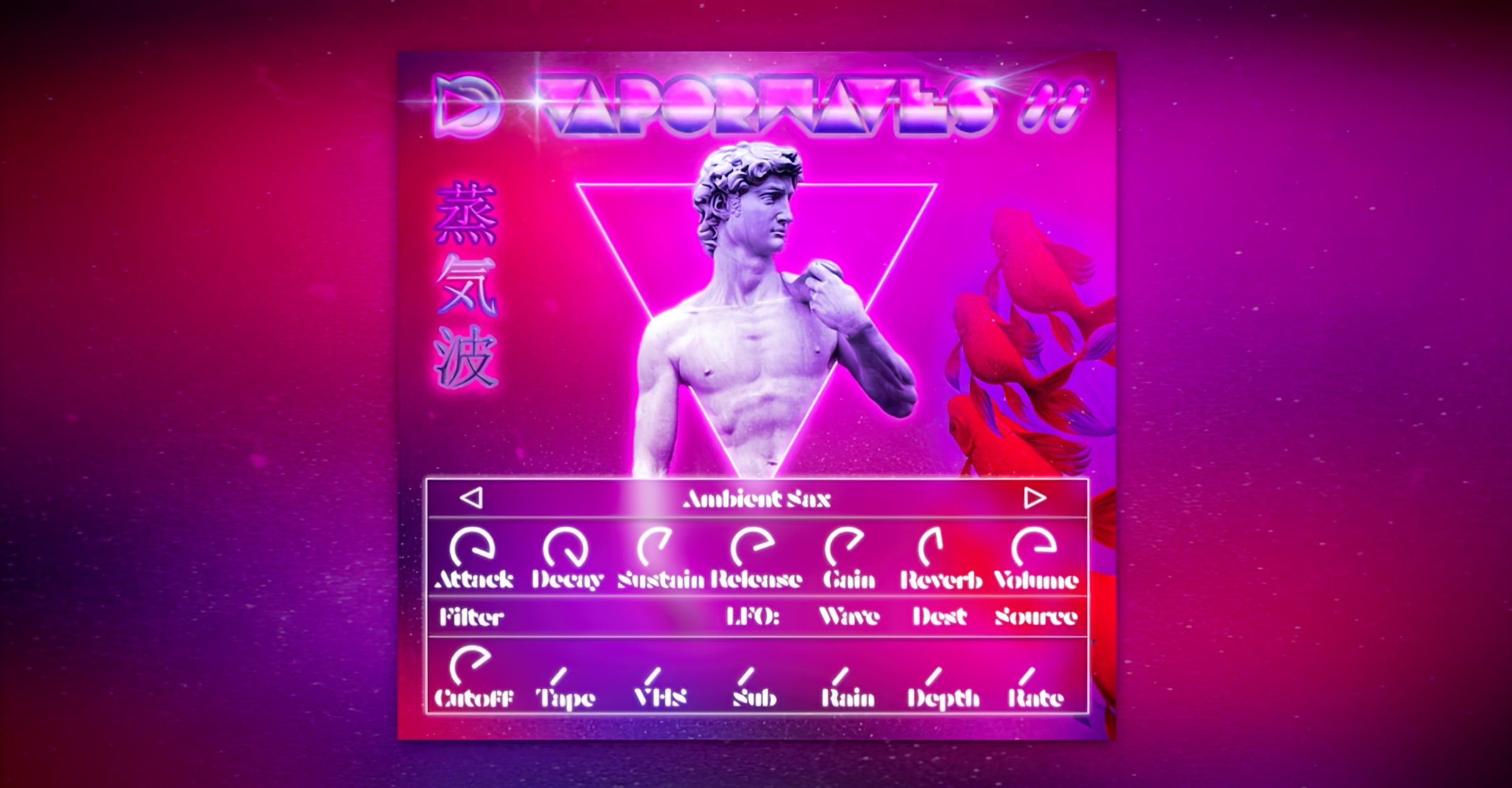 Vaporwaves は、vaporwave 専用の最初のプラグインです。 VST プラグイン インストゥルメントには、80 年代のポップ ミュージックの安っぽいサウンドにインスピレーションを得た 70 個のマルチサンプル サウンドのコレクションが含まれています。 この楽器には、歪んだ VHS パッドからガラス質のピアノ、美しいローズから FM マレットに加え、必須の DX ピアノ、スラップ ベース、サックスまで、あらゆるものが含まれています。 サウンドのコレクションは、非常にクリーンなトーンとディストーションサウンドを組み合わせたものです。 各サウンドは、内蔵エフェクトを使用して VHS スタイルに劣化させることができます。