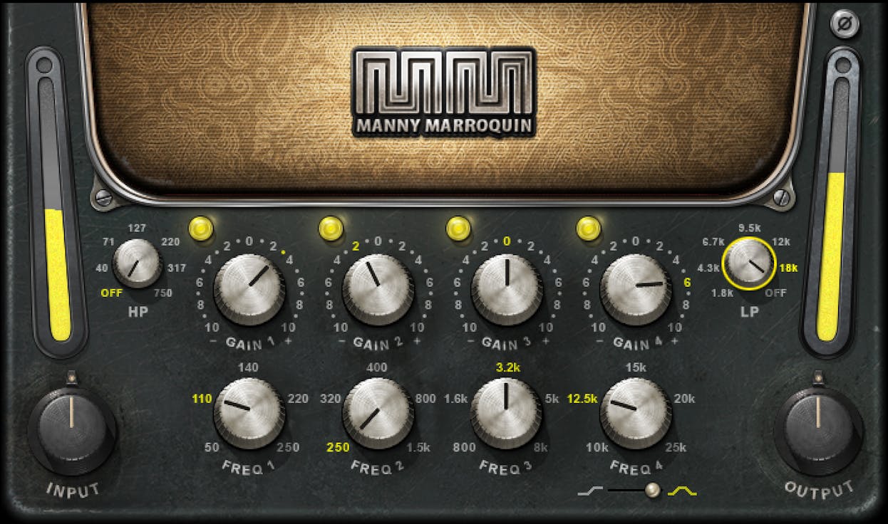 ヴィンテージ EQ のスイッチで選択される周波数は、音楽的な理由から意図的に選択されているため、スーパースター ミキサーによって厳選された 34 の周波数カーブを想像してみてください。それが Manny Marroquin EQ です。