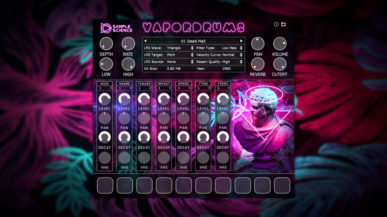 【24時間限定】ヴェイパーウェーブと80 年代の音楽制作愛好家向けにVHS・カセット録音によって設計されたドラムマシン SampleScience「VaporDrums」が60%OFF、8ドルになっております。