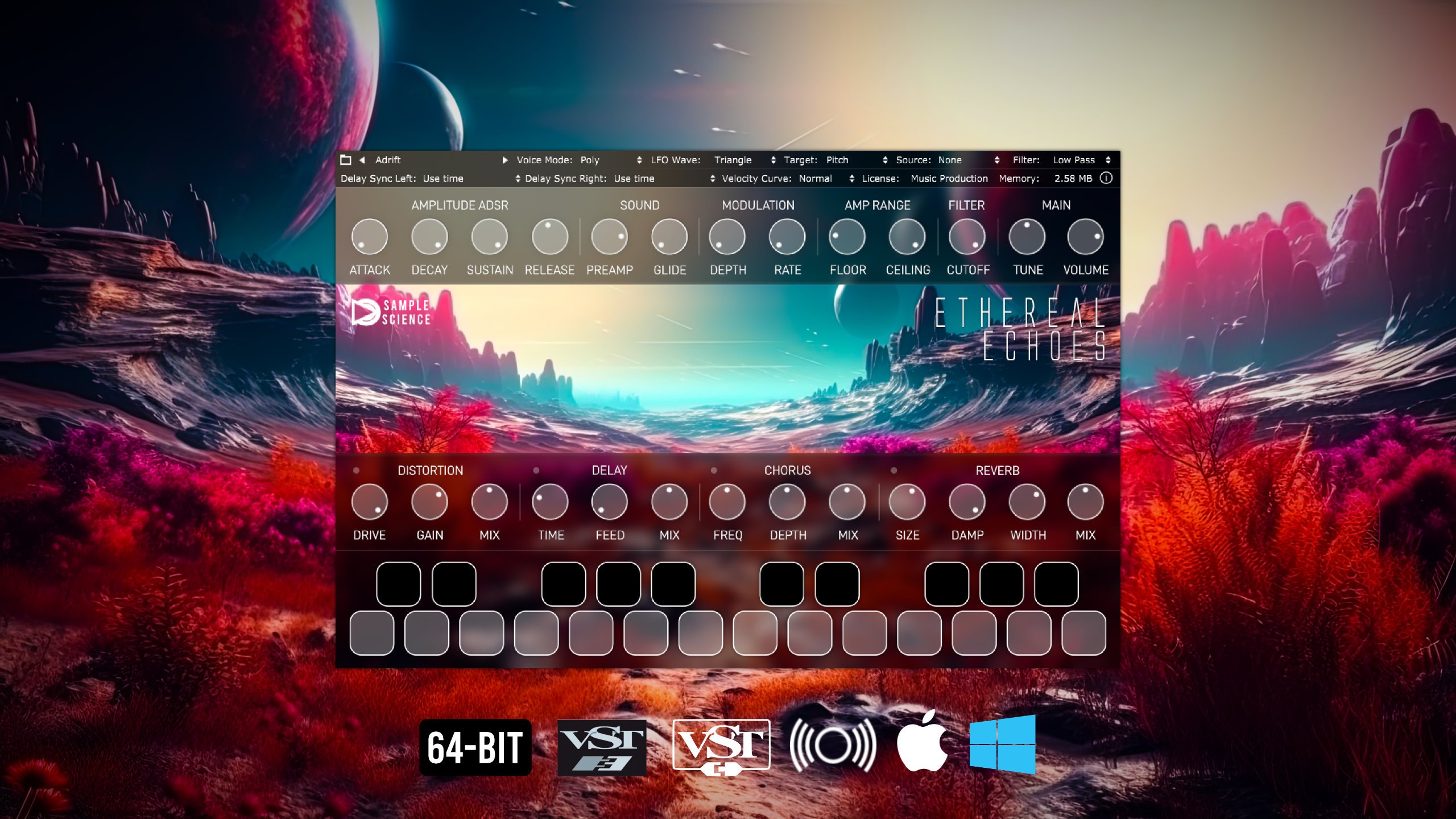 【24時間限定】複雑なディテールを備えた壮大なアンビエントパッドを瞬時に生成する、映画音楽やゲームオーディオに最適なバーチャルインストゥルメント SampleScience「Ethereal Echoes」が60%OFF、12ドルに!!