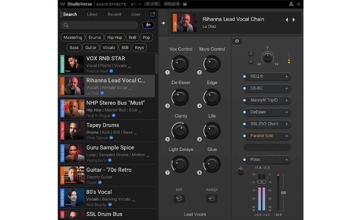 ビヨンセのボーカル チェーン、トニー マセラティのミックス バス、シェップスのドラム サウンド、その他数千のプリセットがすべて StudioVerse に収録されています。
