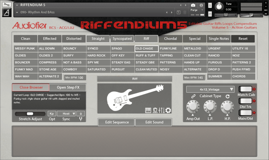 古くなったループは音楽のコードにほとんど適合せず、同じことを何度もロボットのように繰り返すことになります。RIFFENDIUM のループは、ほとんどのメジャーとマイナーの形で録音されたコードに従います (そしてそれだけではありません)。RIFFENDIUM のループはラウンドロビンを使用するため、各サイクルでループは実際のギター演奏のようにわずかに異なるサウンドになります。