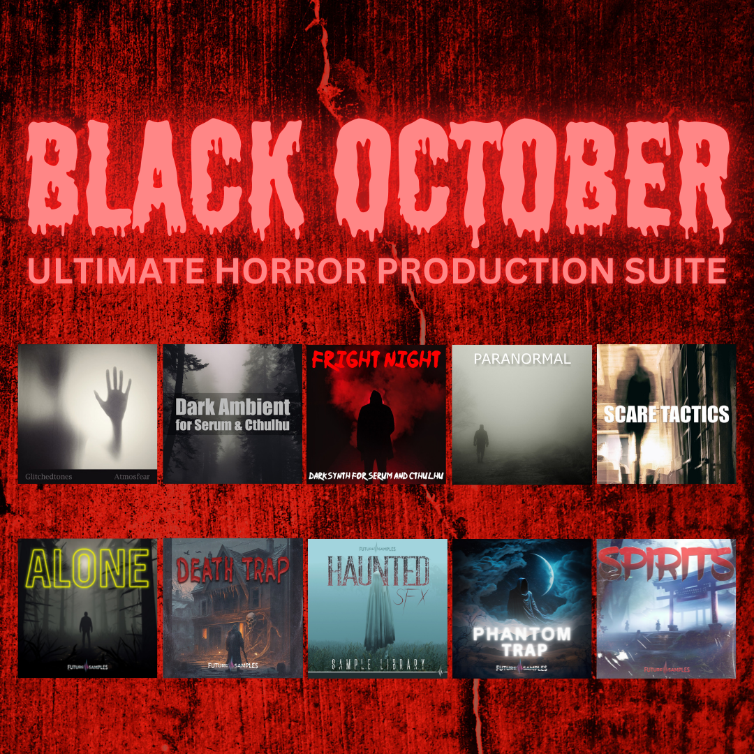 鋭いハーモニクスノイズから表面下で響き渡るベースまで、背筋が凍るような臨場感あふれるサウンドスケープとビートを作成するためのサウンドを収録したサンプルパック10製品バンドル Glitchedtones「Black October - Ultimate Horror Production Suite」が96%OFF、9ドルに!!
