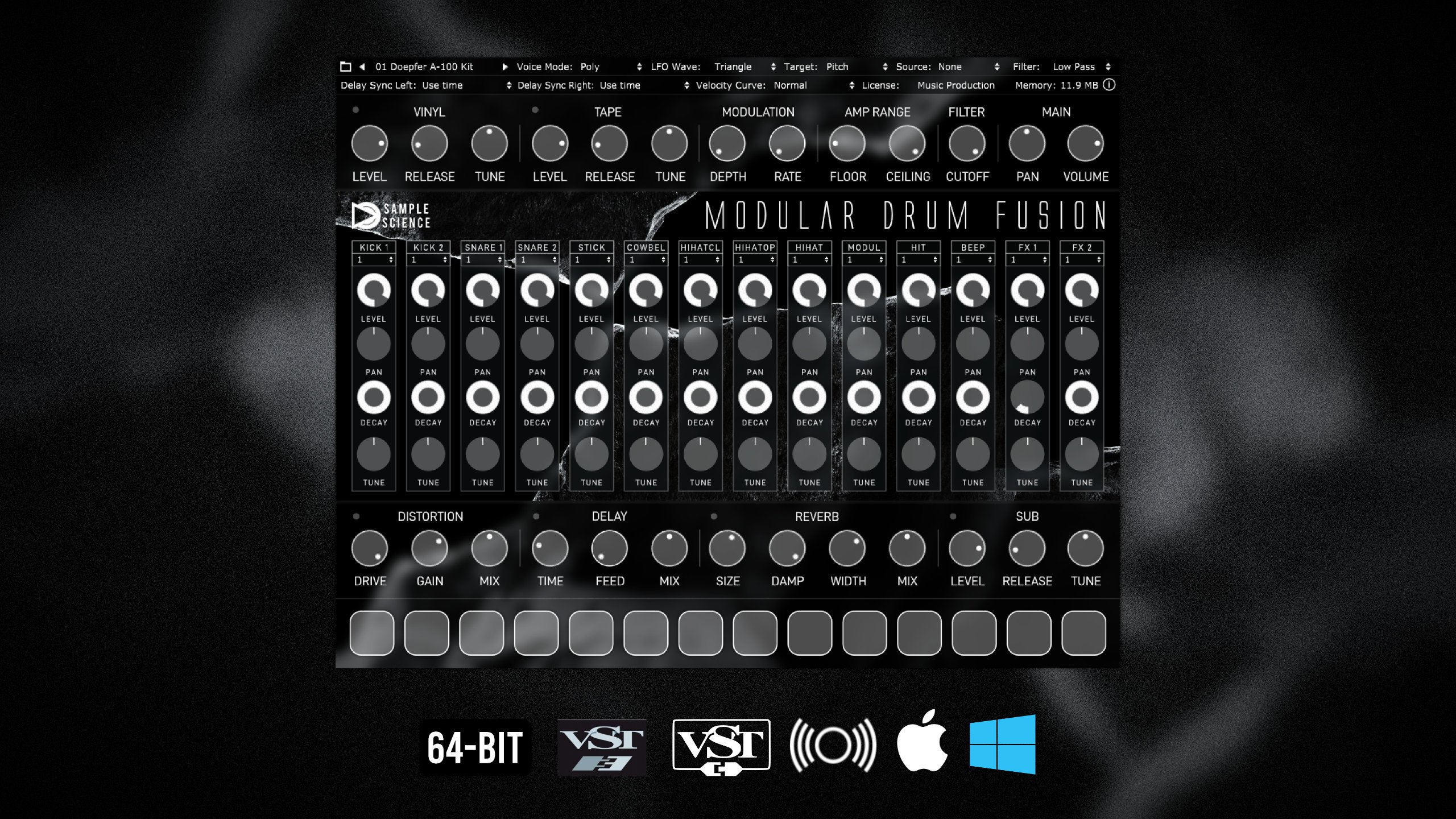 トラックを際立たせる真に独創的な最先端のドラムサウンドを提供する、FM/減算/デジタル合成の融合により設計された究極のモジュラードラムマシン音源 SampleScience「Modular Drum Fusion」リリース & 無料配布中です。