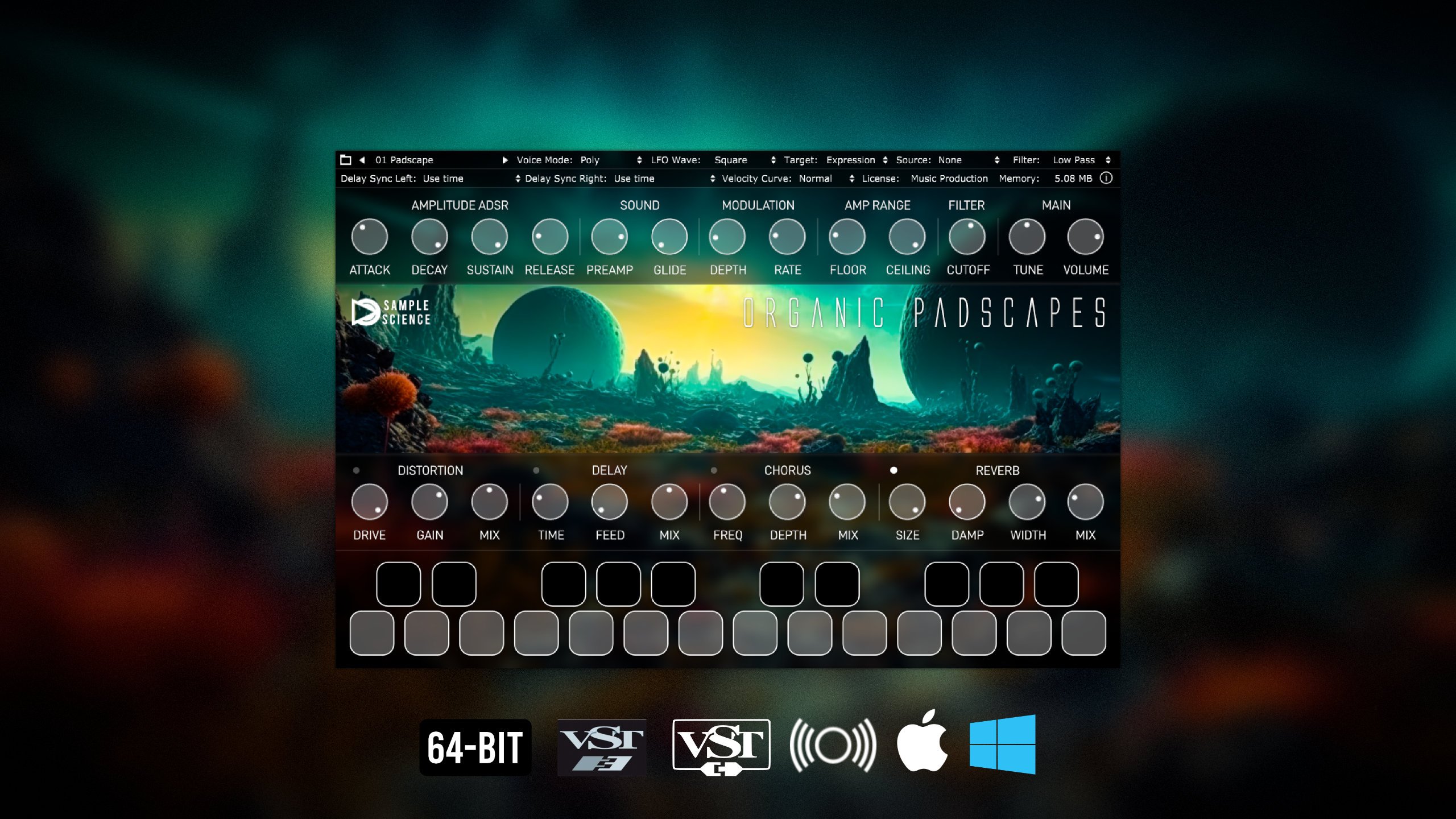 【無料配布】フィールドレコーディングされた環境音の特定の周波数を増幅して音色を整えた、有機的で倍音豊かなサウンドスケープを生成するパッド音源 SampleScience「Organic Padscapes」リリース & 無料配布中!!