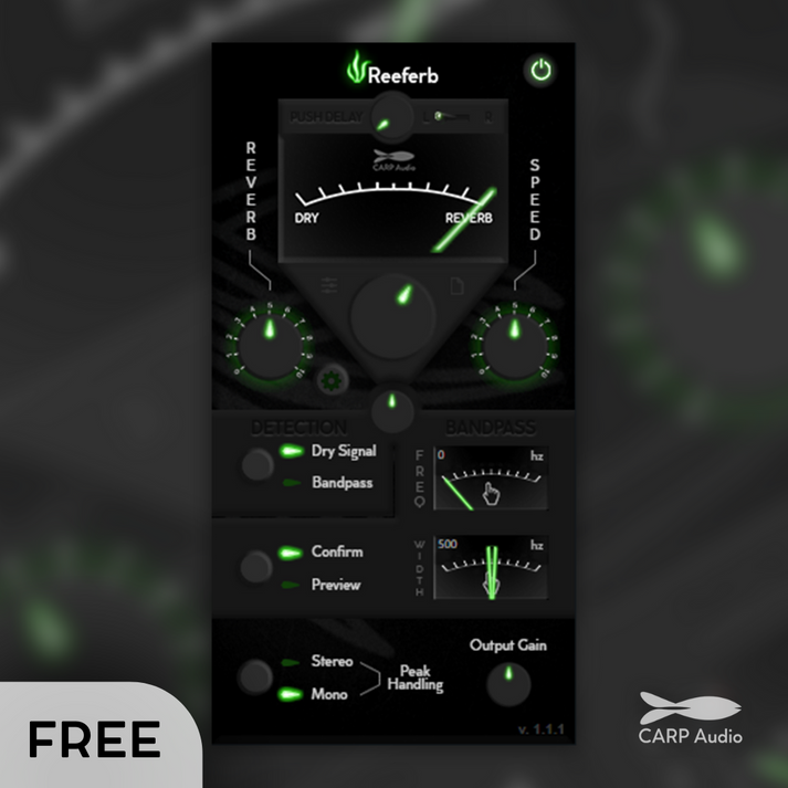 【無料配布】入力信号をリアルタイムで分析し、ミックススペースに応じて自動的に最適なリバーブを生成する、革新的なダイナミックリバーブプラグイン CARP Audio「Reeferb」(通常29.95ドル)が無料配布開始!!