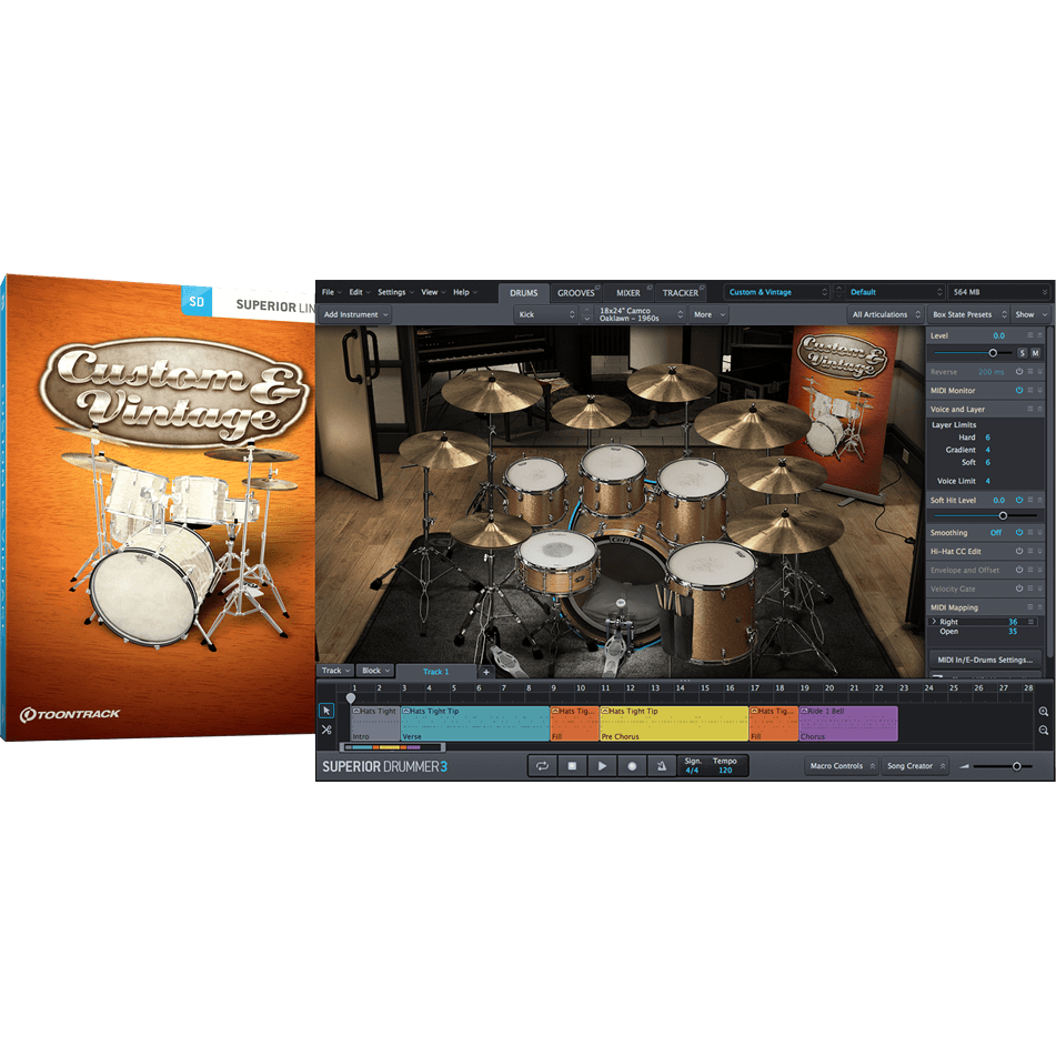 Custom and Vintage SDX は、受賞歴のある Toontrack Music ドラムサンプラー Superior Drummer 2.0 の拡張パックです。ドラムとシンバルのユニークなコレクションの豊富なスティックとブラシの録音が特徴です。