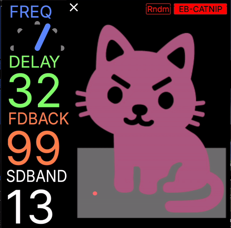 EB-CatNip は、周波数シフトディレイプラグインで、いくつかのユニークな機能を備えています。完全にプラグデータで作成されたこのプラグインは、変更可能で、楽しく、まさにサウンドデザインの遊び場です。
